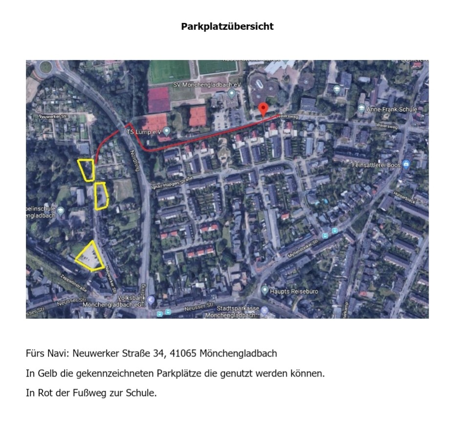 Da der Parkplatz vor den Sportstätten nicht genutzt werden kann, nutzen Sie bitte den ÖPNV oder die alternativen Parkmöglichkeiten in der näheren Umgebung.
