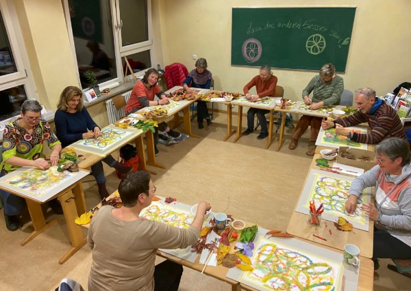 Im Rahmen der pädagogischen Konferenzarbeit bietet Katja von den Benken, Kunsttherapeutin, in den Wintermonaten einen Sozialkunst-Kurs für die Kolleginnen und Kollegen an. Die Idee dahinter ist, wieder ins gemeinschaftliche Tun zu kommen und gestalterisch zu arbeiten. Das gestalterische Miteinander kann wieder zu mehr Verbundenheit führen und Neues entstehen lassen.